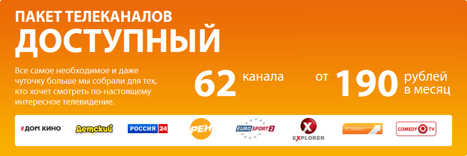 Дополнительно Вы можете подключить тематические пакеты телеканалов: «Детский» за 50 руб/мес, «Наш Футбол» за 149 руб/мес, «AMEDIA Premium» за 200 руб/мес и «Взрослый» за 150 руб/мес.